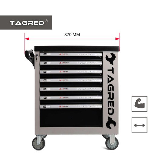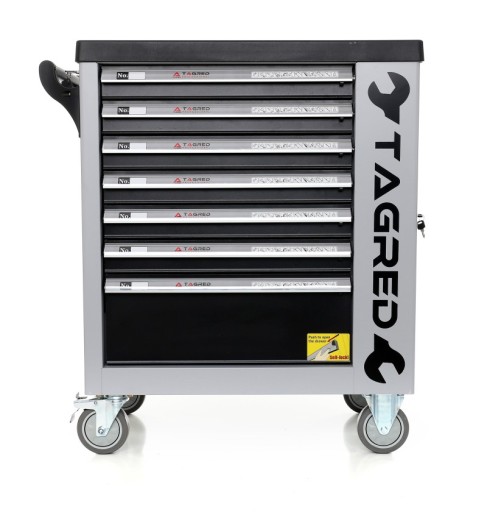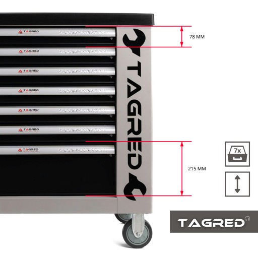 ✅Szafy warsztatowe TAGRED posiadają 7 szuflad o zwiększonej pojemności, co daje nam swobodę przechowywania narzędzi i korzystania z niej.