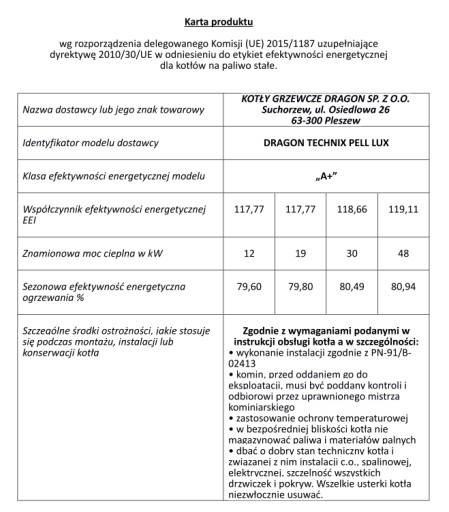 KARTA PRODUKTU I ETYKIETA ENERGETYCZNA