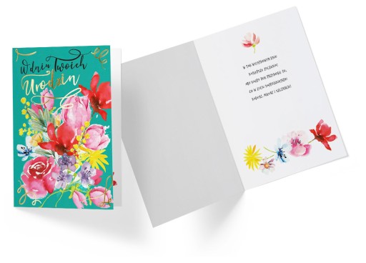 KARNET na URODZINY B6 z kopertą KUKART KARNET urodzinowy OZDOBNY w KWIATY