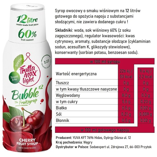 - Przy zakupie 1 butelki otrzymujesz 12 litrów napoju owocowego