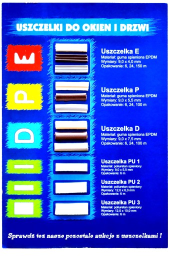 Oryginalne opakowanie (szpula) zawiera: 100 mb uszczelki. Uszczelka na oryginalnej szpuli nawinięta jest w dwóch ze sobą połączonych kawałkach (2x50 mb).