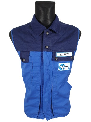 Kamizelka była używana ale jest w bardzo dobrym stanie, posiada nieznaczne ślady użytkowania inne naszywki imienne, różne logo firm. Wykonana jest z bardzo dobrych materiałów. Posiada wiele kieszeni. Pochodzi z niemieckich zakładów.