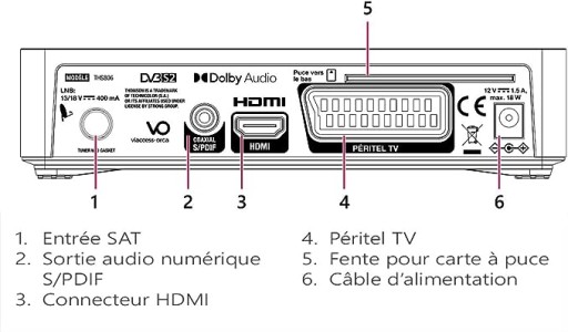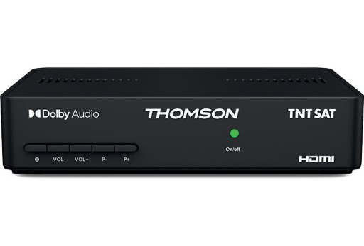Thomson THS806. Impedancja: 75 Ω. Technologia łączności: Przewodowa. System formatu sygnału cyfrowego: DVB-S2, Obsługiwane rozdzielczości grafiki: 1280 x 720 (HD 720), 1920 x 1080 (HD 1080). Napięcie wejściowe AC: 100 - 240 V, Częstotliwość wejściowa AC: 50 - 60 Hz, Pobór mocy: 10 W. Szerokość produktu: 180 mm, Głębokość produktu: 110 mm, Wysokość produktu: 43 mm