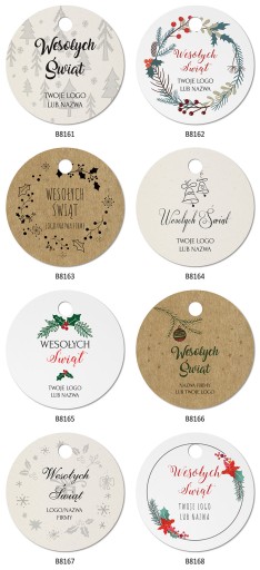 ETYKIETY na prezenty metki cenowe ŚWIĄTECZNE okrągłe LOGO