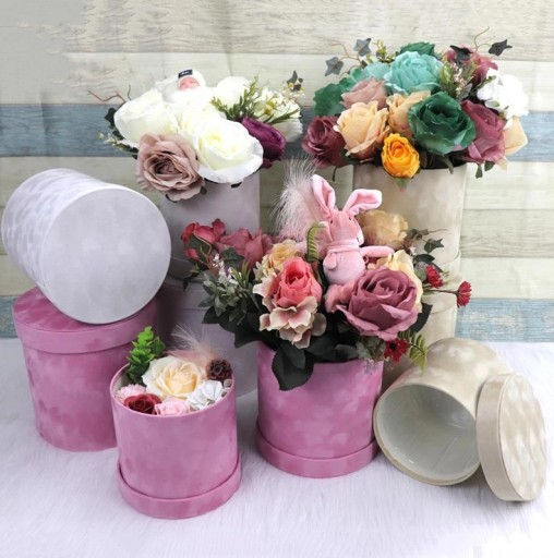 Большая FLOWER BOX велюровая замша Набор из 3 штук для цветочных композиций, розовый