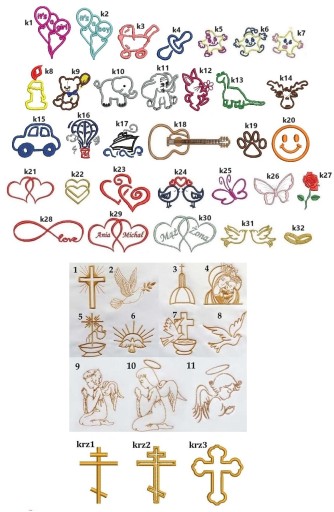 - max. 5 słów (data liczona jest jako jedno słowo) i 1 motywu graficznego (z przedstawionych na tej aukcji poniżej)