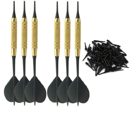 Rzutki do gry w dart z czarnymi piórami i mosiężnym barrel'em oraz wymienne 100 grotów to idealny wybór dla graczy, którzy cenią sobie jakość i precyzję w trakcie gry.