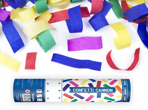 Tuba strzelająca papierowym, kolorowym konfetti, długość 20 centymetrów.