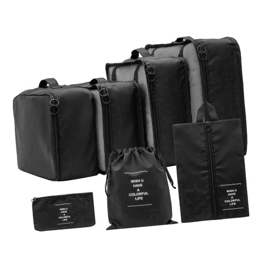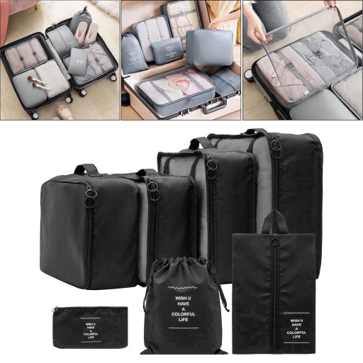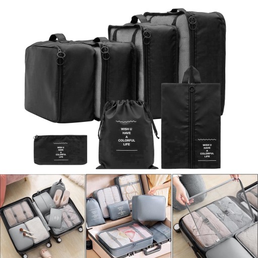 7x Kostki do pakowania Niezbędne w podróży Organizer walizkowy o dużej pojemności, czarny