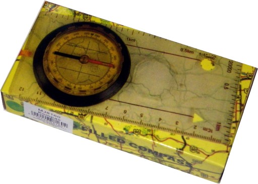 Kompas w formie płytki namapowej. Idealnie nadaje się do startów w imprezach na orientację. Na płytce umieszczono skale różnych map; 1:25000 (1cm=250m) i 1:50000 (1cm-500m) . Linijka pełni funkcję odliczania skal pełnych np. 1:10 000 ( 1cm linijki to 100 metrów w terenie - patrz na kompas). Dzięki przeźroczystości płytki, bez problemu można pracować na mapie, jak i wyznaczyć azymut do marszu z punktu A do B. Ruchoma podziałka na tarczy kompasu (od 0 do 360 stopni), pozwala na dokonanie odczytu azymutu, punktów namiarowych czy treści mapy podczas marszu/biegu. Kompas należy trzymać w poziomie tak, aby tarcza mogła się swobodnie obracać (obrócenie lub mocne przechylenie kompasu, powoduje blokadę igły). Czerwona strzałka pokazuje kierunek północy. Dobry i prosty kompas do startów w imprezach na orientację, oraz uprawiania turystyki kwalifikowanej. Igła w kompasie jest zawieszona w roztworze alkoholu, na specjalnym bolcu, co umożliwia pracę przy temperaturze ujemnej. Czas stabilizacji igły około 2-3 sekundy. Do pracy z mapą, kompas posiada lupę, która zawsze wspomoże w odczytywaniu szczegółów topograficznych.