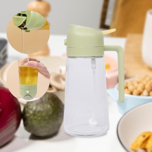 [ERGONOMICZNA KONSTRUKCJA]: butelka z dozownikiem oleju w sprayu, wygodny uchwyt, łatwa kontrola ilości oleju.