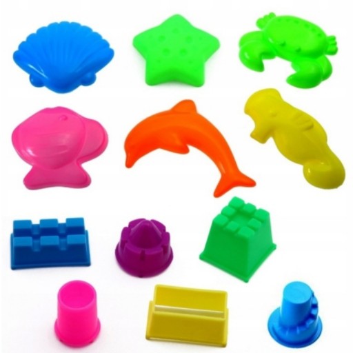 W zestawie znajduje się wiele fajnych i przydatnych foremek (6 foremek w kształcie zwierzątek i 6 foremek potrzebnych do budowania), dodatkowo nie musisz się martwić o bałagan, wystarczy umieścić piasek w dołączonym do zestawu baseniku.