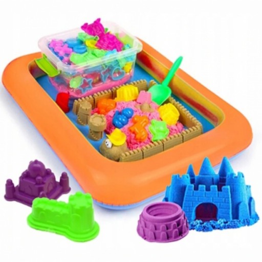 ✅ Piasek Kinetyczny z dmuchanym basenem i zestawem akcesoriów to niesamowita zabawa dla dzieci w wieku od 3 lat. Rozwija wyobraźnię i zręczność manualną dziecka ! Piasek jest w 100 % bezpieczny dla dzieci, nawet tych, które cierpią na różnego rodzaju alergie.