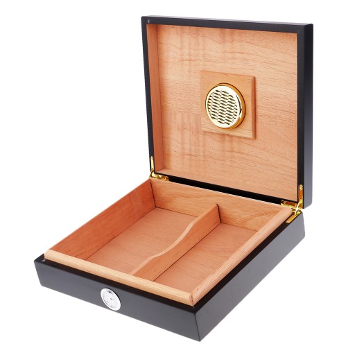 Pudełko z higrometrem z hiszpańskiego drewna cedrowego w kolorze czarnym