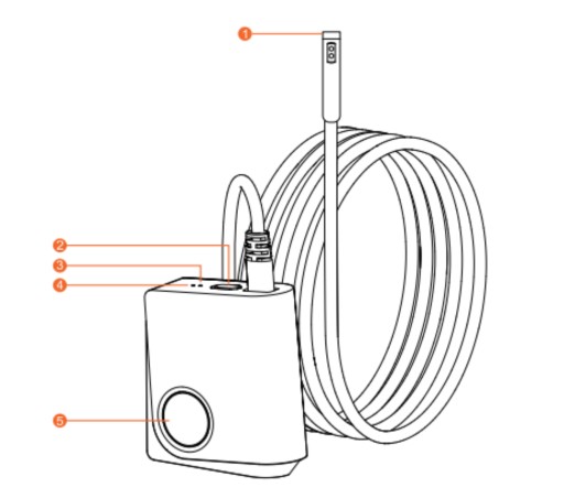 Kamera jest fabrycznie połączona portem USB z zasilaczem, który ładujesz wcześniej. Takie rozwiązanie pozwala korzystać z endoskopu w terenie aż do 4 godzin.