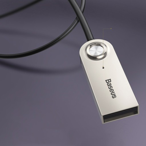 Transmiter dźwięku BASEUS jest to elegancki oraz kompaktowy adapter bluetooth, wyposażony w złącze USB oraz miniJack 3,5mm. Urządzenie pozwala na odbiór sygnału dźwiękowego z urządzeń wyposażonych w funkcję BT takich jak smartfon, tablet na urządzenia nieposiadające takiej funkcji np. radio samochodowe, głośniki. Adapter posiada najnowszą wersję BT 5.0 o zasięgu ok. 5m. Dzięki wbudowanemu mikrofonowi urządzenie wspiera funkcję Hands-free. Do prawidłowego działania potrzebne jest źródło zasilania podłączone do gniazda USB.