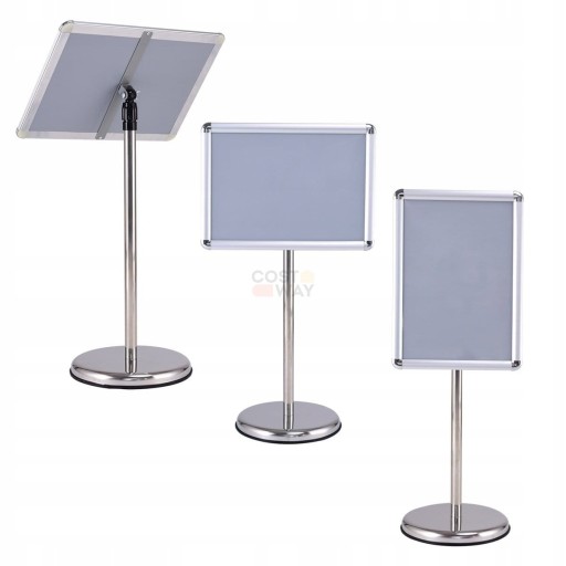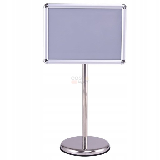 Ten prosty i praktyczny podłogowy stojak reklamowy to idealny wybór do ekspozycji i reklamy w miejscach publicznych. Dzięki aluminiowej ramie i wspornikowi ze stali nierdzewnej stojak na menu jest trwały i solidny. Teraz łatwo i niedrogo można zareklamować swoje promocje lub oferty za pomocą tego wyświetlacza plakatowego.