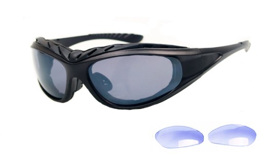 - W komplecie z okularami wymienne szkła - przyciemniane (niebieskie REVO), lekko przyciemnione, żółte oraz bezbarwne - lekko dymione (plus szkła przyciemniane założone w okularach).
