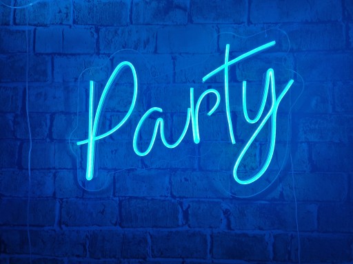 Przedmiotem sprzedaży jest podświetlony neon LED Life is a Party, kolor błękitny.
