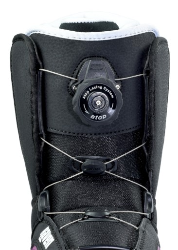 Teraz zawiązywanie buta odbywa się błyskawicznie w każdych warunkach. Niezależnie od miejsca - czy jesteś jeszcze w hotelu, czy już w samochodzie, przy wyciągu, założenie i zdjęcie butów zajmuje tylko kilka sekund. Wystarczy jedynie kręcić pokrętłem systemu ATOP w prawo (zgodnie z ruchem wskazówek zegara), aby ściągnąć linki i związać but, bez konieczności monotonnego przekładania i wiązania sznurówek.