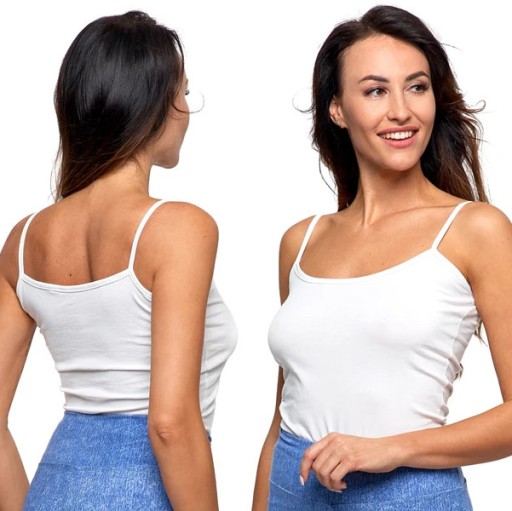 Bawełniany podkoszulek damski na ramiączkach z miłej w dotyku dzianiny typu dżersej.