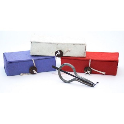 Murjunga z Nepalu w pudełku wykonanym z papieru. Wykonana z mosiądzu, język z żelaza.