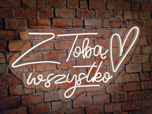 Przedmiotem sprzedaży jest podświetlony neon LED Z Tobą wszystko, kolor ciepły biały.