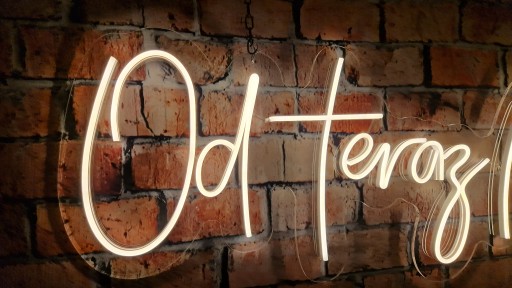 Przedmiotem sprzedaży jest podświetlony neon OD TERAZ MY, kolor ciepły biały.