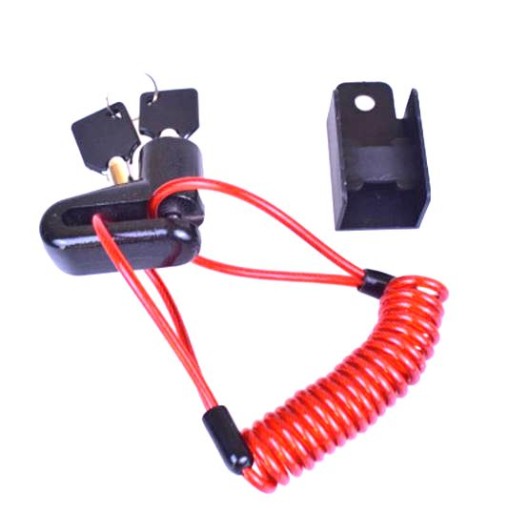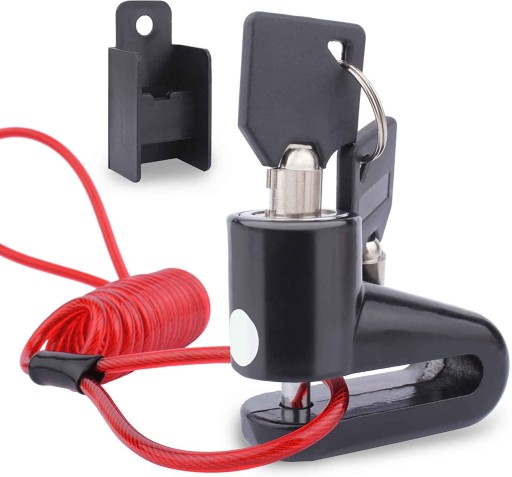 Wodoodporne antykradzieżowe zabezpieczenie disclock z linką do Xiaomi M187 / M365 / PRO / PRO 2 / 1S / Essential / Motus Scooty 8,5 / Fiat 500 i wielu pokrewnych modeli - kolor CZARNO - CZERWONY