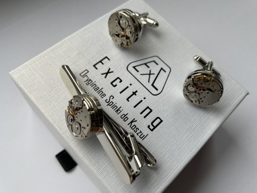 - Zestaw artystycznych spinek do mankietów koszuli z kolekcji renomowanego polskiego producenta E X C I T I N G.