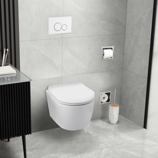 - Kompletny zestaw WC: Stelaż, miska z deską wolnoopadającą i przycisk