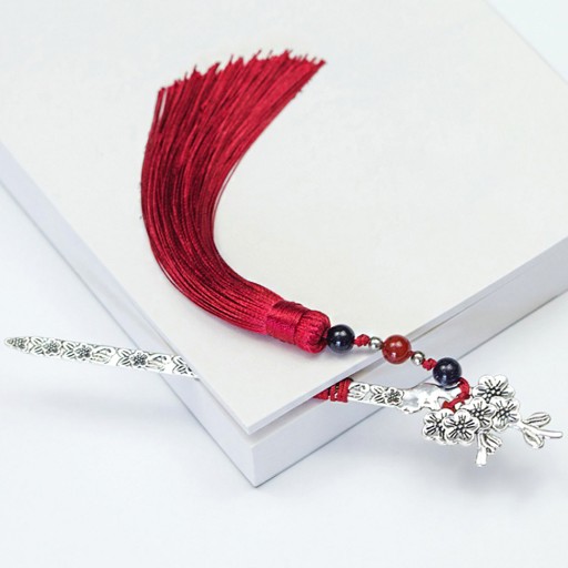 Elegancka zakładka do książki, która wyjątkowo wyróżnia się swoim motywem miecza. Przedstawiony jest w pełnej gracji, z delikatnymi konturami oraz pięknym frędzlem w kolorze bordowym.