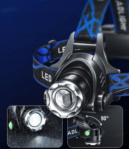 ✔️ Regulowana głowica latarki pozwala na dostosowanie jej nachylenia do swoich potrzeb w zakresie 90°.