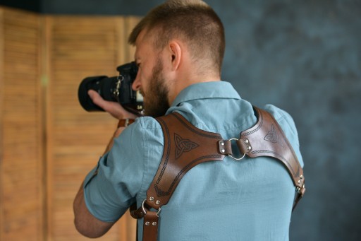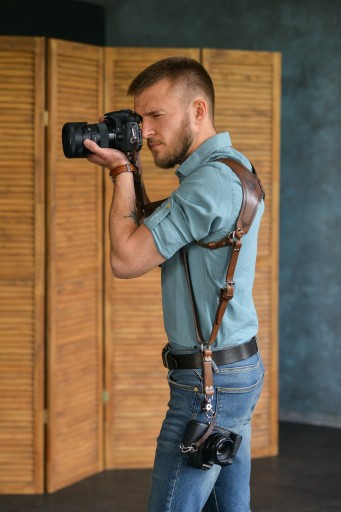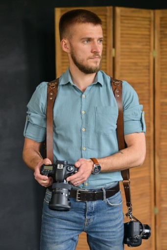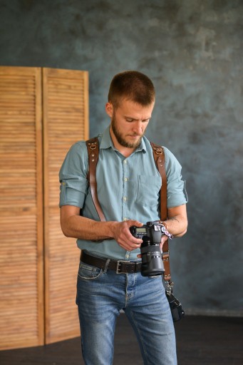 SZELKI FOTOGRAFICZNE wykonana ze skóry naturalnej o grubości 3 - 3,5 mm. Odpowiedni dla fotografów na każdym poziomie zaawansowania, do wszystkich rodzajów zdjęć, w tym ślubów, wydarzeń sportowych itp.