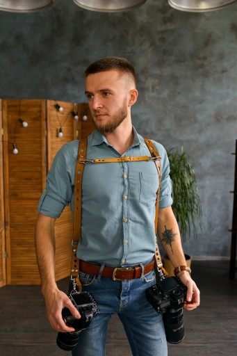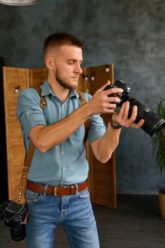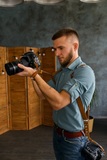 SZELKI FOTOGRAFICZNE wykonana ze skóry naturalnej o grubości 3 - 3,5 mm. Odpowiedni dla fotografów na każdym poziomie zaawansowania, do wszystkich rodzajów zdjęć, w tym ślubów, wydarzeń sportowych itp.