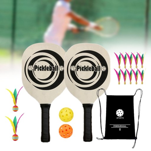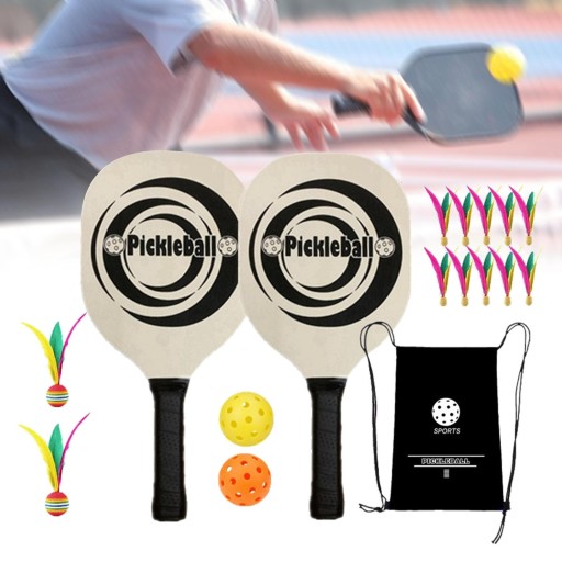 [Zestaw rakiet Pickleball]: Opakowanie zawiera 2x drewno, 2x piłki Pickleball, 1 torbę do przechowywania, 10x małych piłek i 2x duże piłki, które są przenośne i łatwe do przenoszenia.
