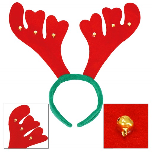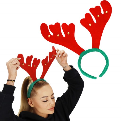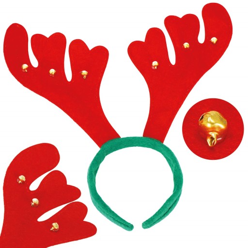 OPASKA ŚWIĄTECZNA ROGI RENIFERA Z DZWONECZKAMI MIKOŁAJKI ŚWIĘTA NA GŁOWĘ