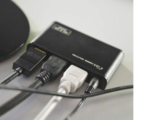 - Jednoczesne wyświetlanie obrazu z jednego źródła sygnału HDMI na dwóch wyświetlaczach HDMI