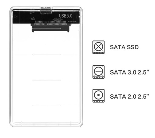 КОРПУС ДЛЯ Жёсткого диска SSD-накопителя 2,5" USB 3.0 SATA ПРОЗРАЧНЫЙ КАРМАН