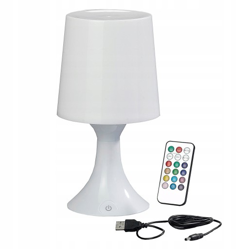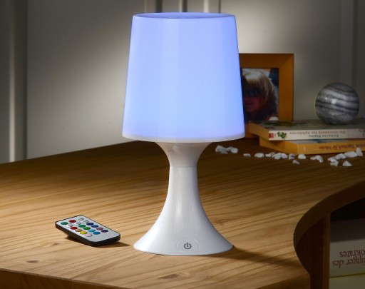 Lampę obsługuje się dotykając podstawy lampy lub za pomocą pilota W zależności od nastroju można dobrać kolor lampy stołowej.