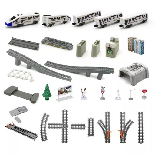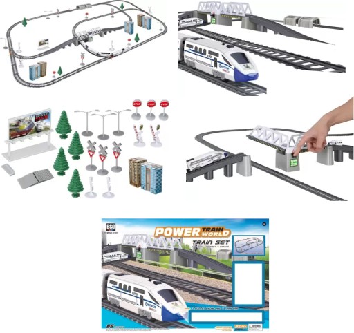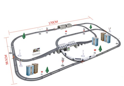 Kolejka elektryczna na baterie wpływa na pobudzenie wyobraźni oraz kreatywność dziecka. Lokomotywa została zaprojektowana w sposób bardzo realistyczny, odwzorowana jest na prawdziwą kolejkę. Kolejka po włączeniu samodzielnie porusza się po torach, ciągnąc za sobą doczepione wagony. Zestaw zawiera również most z tunelem, którym możemy sterować za pomocą przycisku, można otwierać lub zamykać przejazd. W zestawie znajduje się aż 86 elementów, które można układać według własnych upodobań, w dowolnej konfiguracji. Nie zawsze tor musi wyglądać tak samo, co dodatkowo uatrakcyjni zabawę! Na torze znajdują się dźwignie, dzięki którym możemy zmienić trasę maszyny. Elementy kolejki jak i pociągu łączymy za pomocą specjalnych haczyków. Dla jeszcze lepszej zabawy w zestawie znajdują się również drzewka, znaki, most z podnoszonym ramieniem, wagoniki, pociąg. Bardzo długi tor, długość całkowita toru to 9 metrów. W górnej części pociągu znajduje się przycisk, który odpowiada za prędkość.