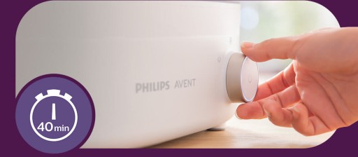 Przygotowanie butelek do następnego karmienia zajmuje zaledwie 40 minut. Po przeprowadzeniu sterylizacji czystą parą, intensywny strumień przefiltrowanego powietrza suszy butelki i akcesoria, dzięki czemu są one gotowe do natychmiastowego użycia.