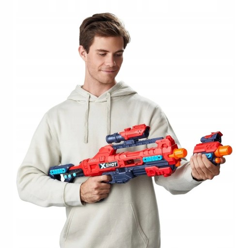 12 dodatków w tym - celownik, lufa, dwójnóg, uchwyt na strzałki czy kolba oraz duży zapas 48 strzałek X-Shot!