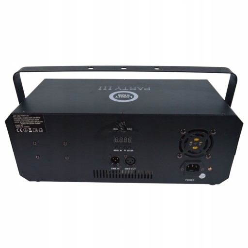LIGHT4ME PARTY III to wielofunkcyjne oświetlenie sceniczne oparte na technologii LED, z możliwością sterowania za pomocą bezprzewodowego pilota. Sprzęt łączy w sobie rzutnik wzorów gobo (gobo flower), oświetlenie typu wash PAR, derby oraz czerwony i zielony laser. Dzięki temu to niewielkie urządzenie samodzielnie jest w stanie zapewnić bogate i zróżnicowane efekty świetlne.
