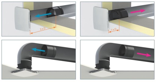 W zależności od tego gdzie umieścimy jeden deflektor możemy ustawić przepływ powietrza w dwóch lub trzech kierunkach