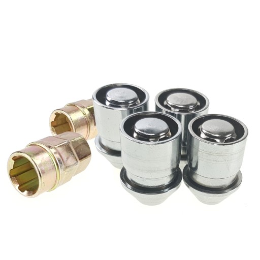Nakrętki posiadają zabezpieczenie w postaci odpowiednio ukształtowanego i unikalnego wzoru. Dodatkowo, zastosowano wokół niego specjalną ruchomą i obrotową tuleję. Dzięki temu nie ma możliwości „nabicia” nieoryginalnego klucza zarówno na wewnętrzną, jak i zewnętrzną część zabezpieczenia. Zestaw wykończono powłoką chromową, co dodatkowo podnosi walory estetyczne w zestawieniu z felgami aluminiowymi.