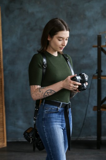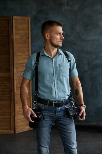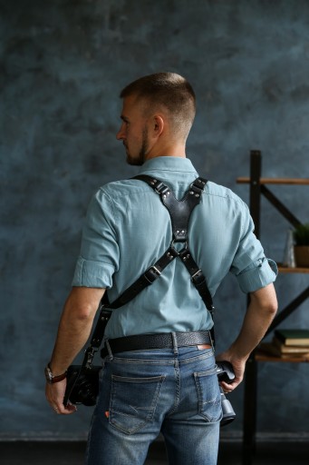 Ten skórzany pasek NA 2 APARATY pomaga skupić się wyłącznie na procesie kreatywnym, zamiast odczuwać zmęczenie i ból szyi/ramion. Jest to doskonały towarzysz do codziennego fotografowania!