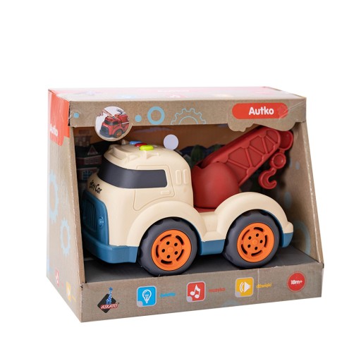 Dźwig to pojazd stworzony dla dzieci już od 18 miesiąca życia, które uwielbiają odkrywać świat wokół siebie. Wyposażony w ruchome elementy, zachęca do kreatywnej zabawy i rozwijania zdolności manualnych.
