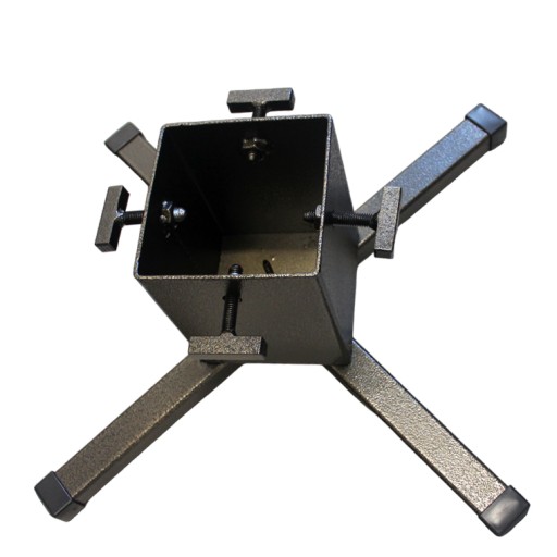 Metalowy stojak pod choinkę wykonany ze stali, o solidnej i stabilnej konstrukcji.