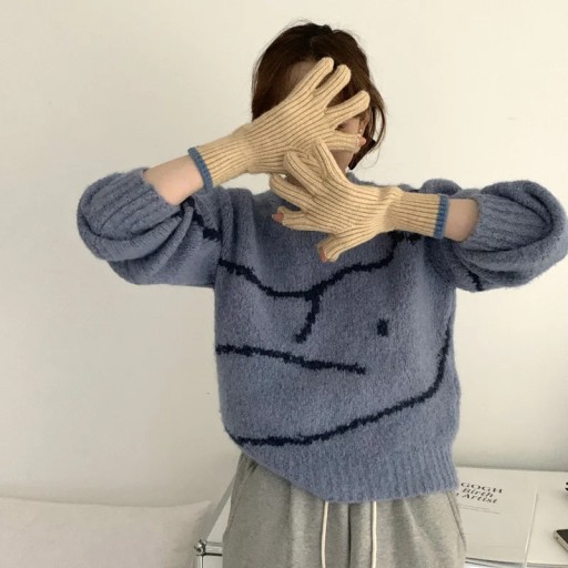 Pure Color Knitted Woolen Gloves Female Winter Screen Student Riding Split